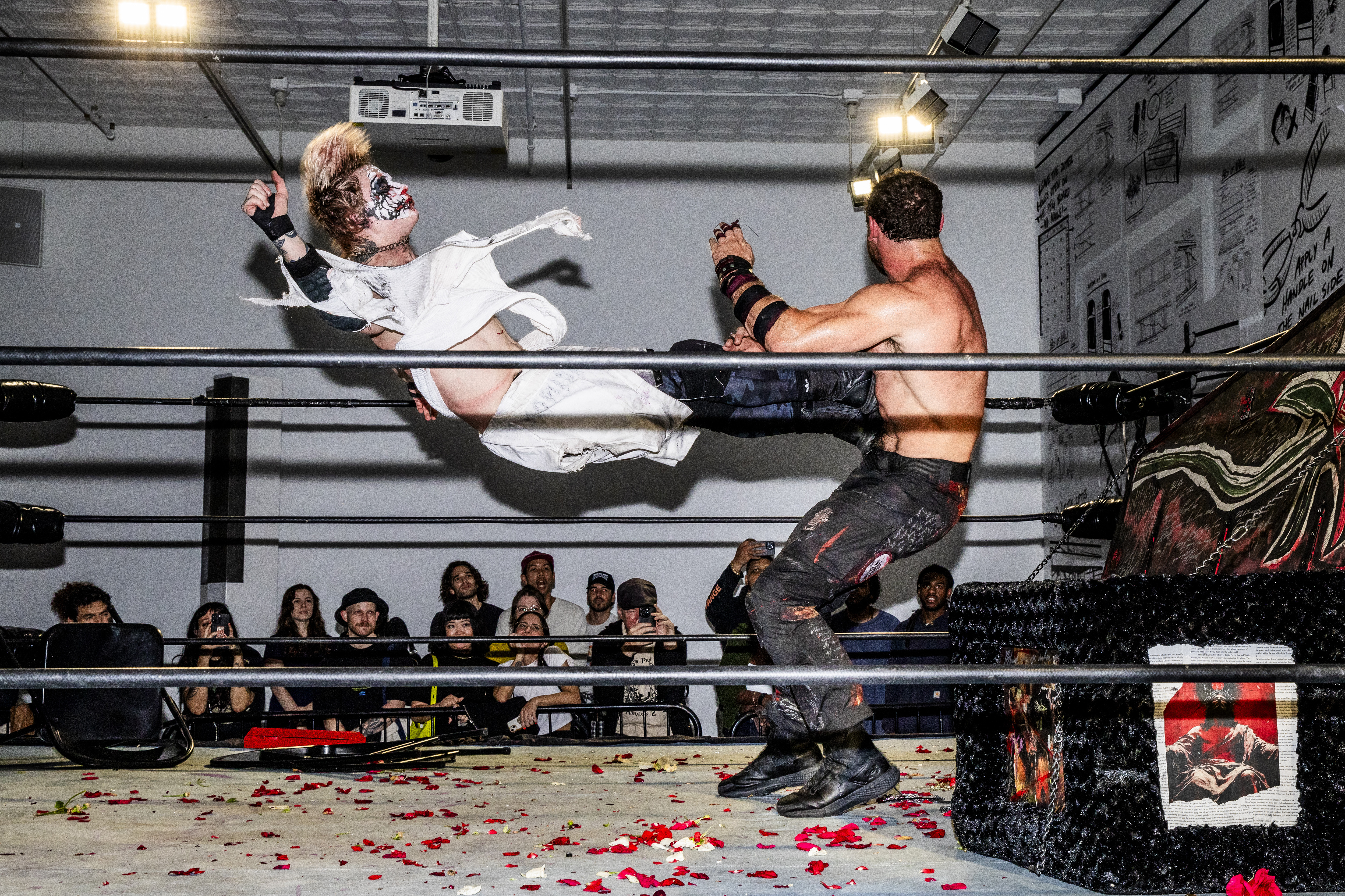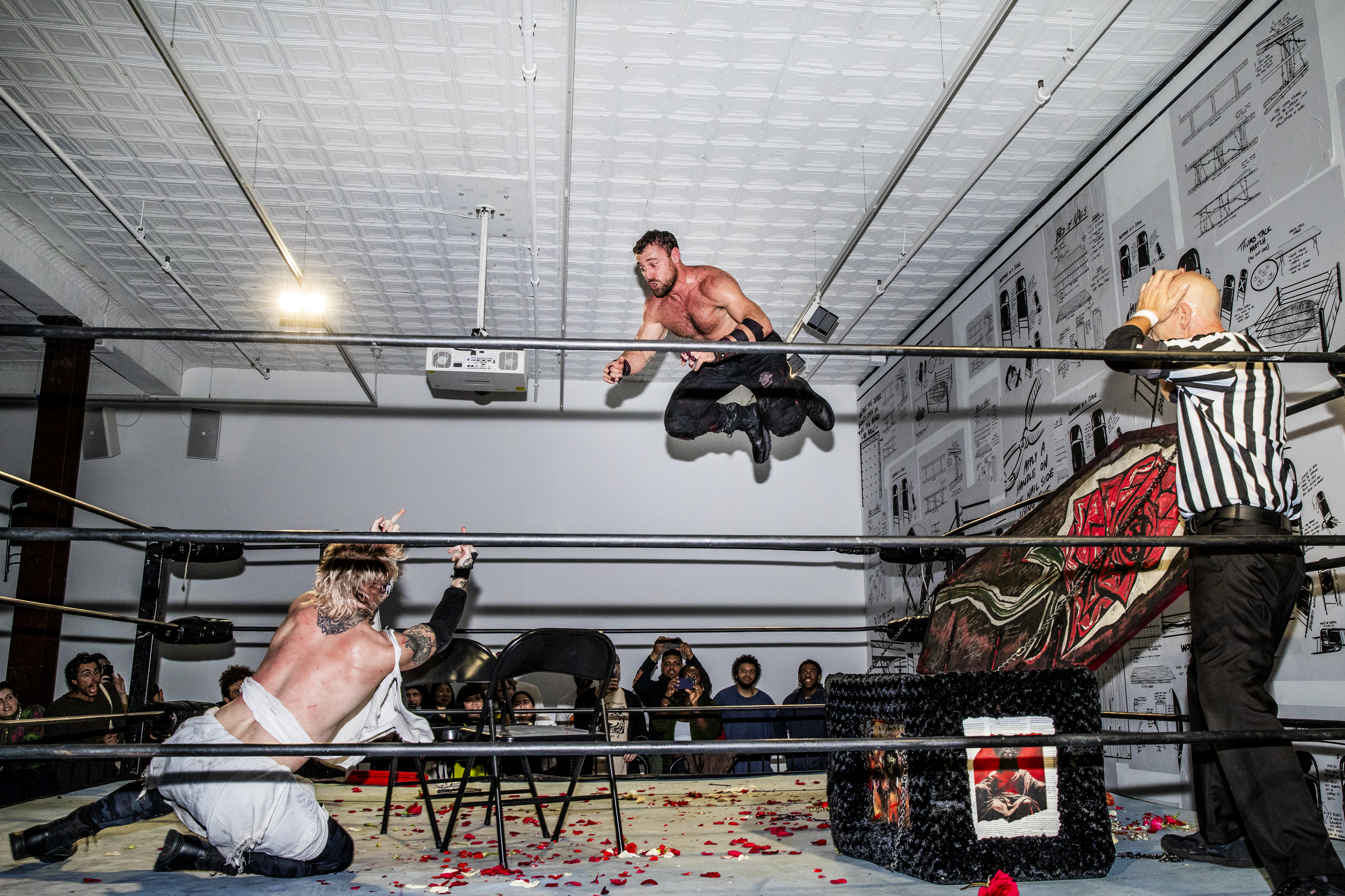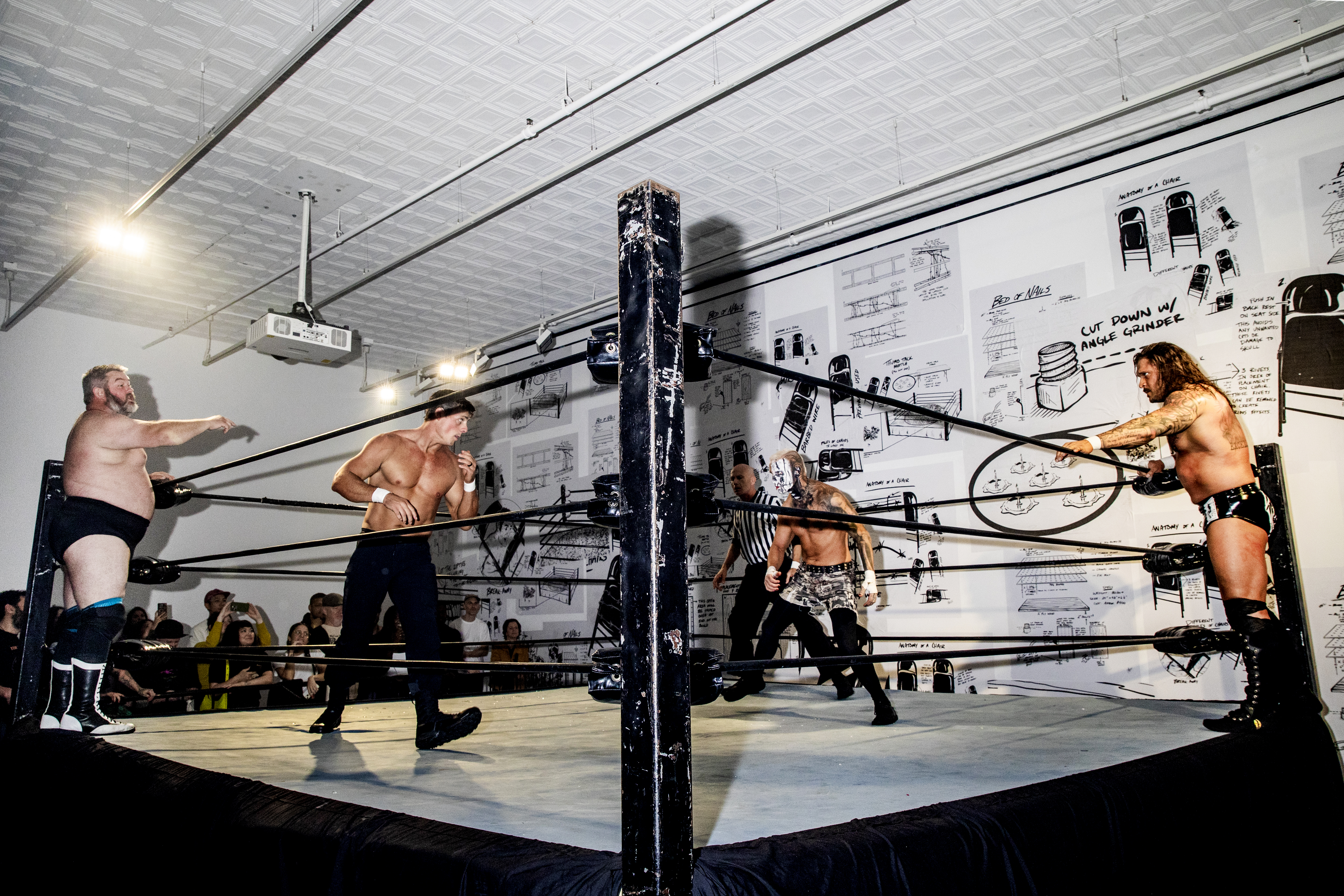TNT Champion Darby Allin will be performing live wrestling matches inside a ring installed within the 52 Walker gallery space. Along with Allin, wrestlers Steven Borden, JD Drake, Sid Ellington, Kiran Grey, Jamie Hayter, Brody King, Killer Kross, Billie Starkz, and Timothy Thatcher will be going head-to-head in the ring. The shows will include live musical performances by the bands Dead City, Haywire, and Purest Form, as well as Crack Daddy Caine and Tibbie-X from the band, Leftöver Crack. Both nights will feature special appearances by Charlie Ramone and Raymond Pettibon. Standing room only.