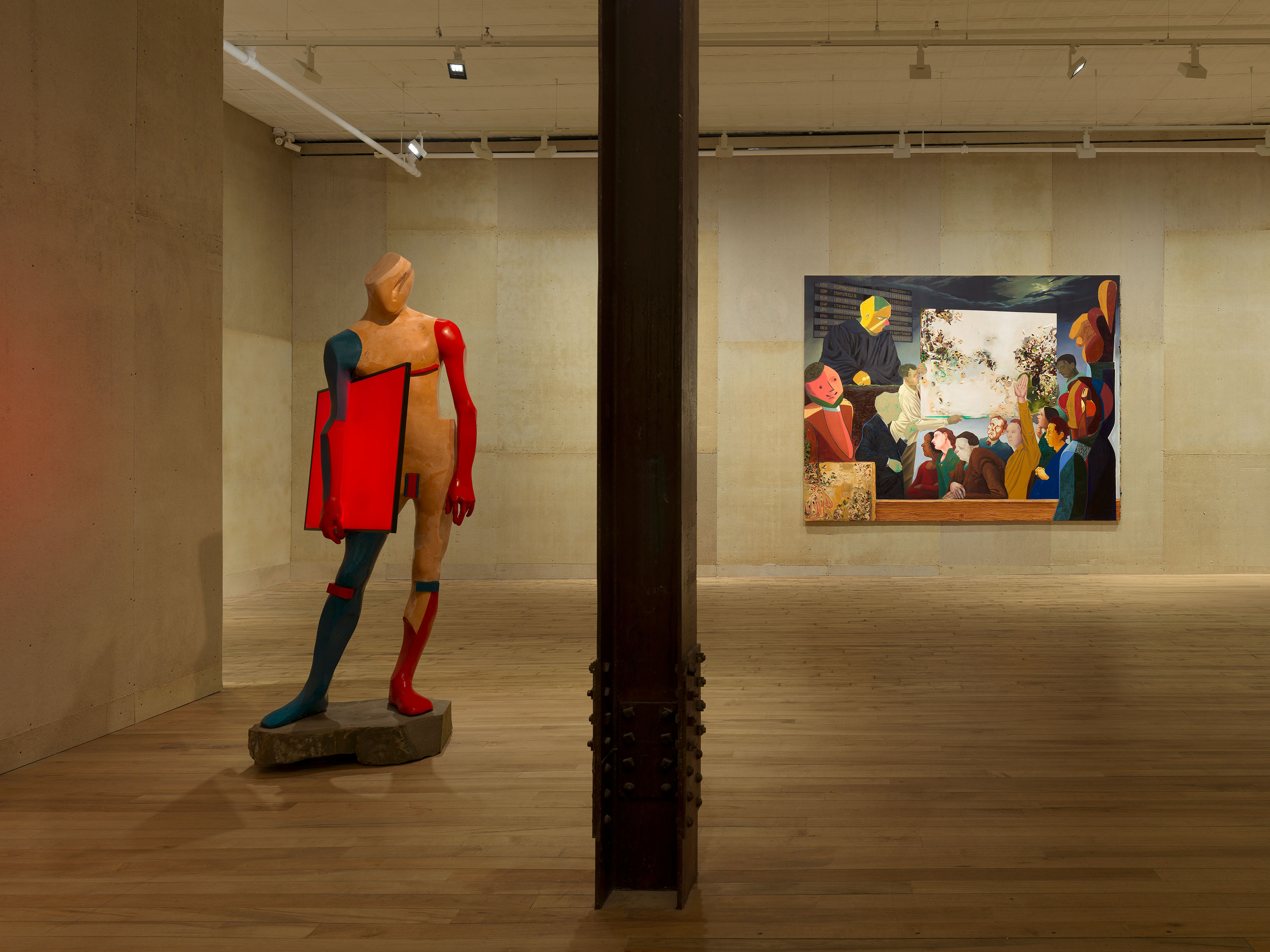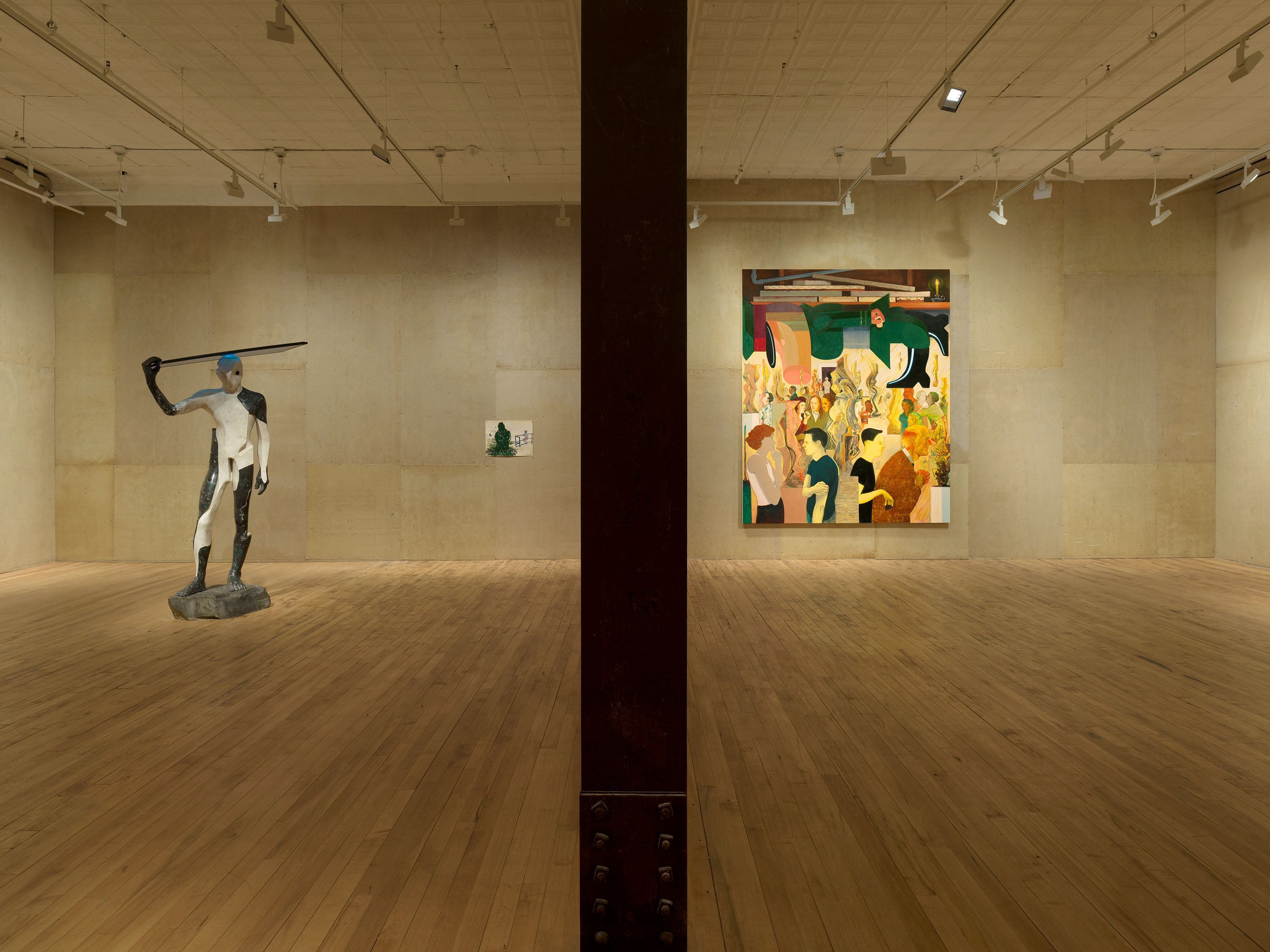 In a prolific career spanning over thirty years, Eisenman has become known for expressive figurative canvases and sculptures that capture moments of contemporary life with élan, humor, and gravitas. From the late 1990s onward, the artist has pursued a practice that centers perspectives peripheral to dominant narratives, lacing intimate subject matter with cues from attendant political and social milieus. Paying homage to twentieth-century interwar styles and movements such as the Neue Sachlichkeit while exercising a distinct visual language, Eisenman wryly deploys allegory and genre to survey the spirits and tensions that mediate our broad experience of history and culture.